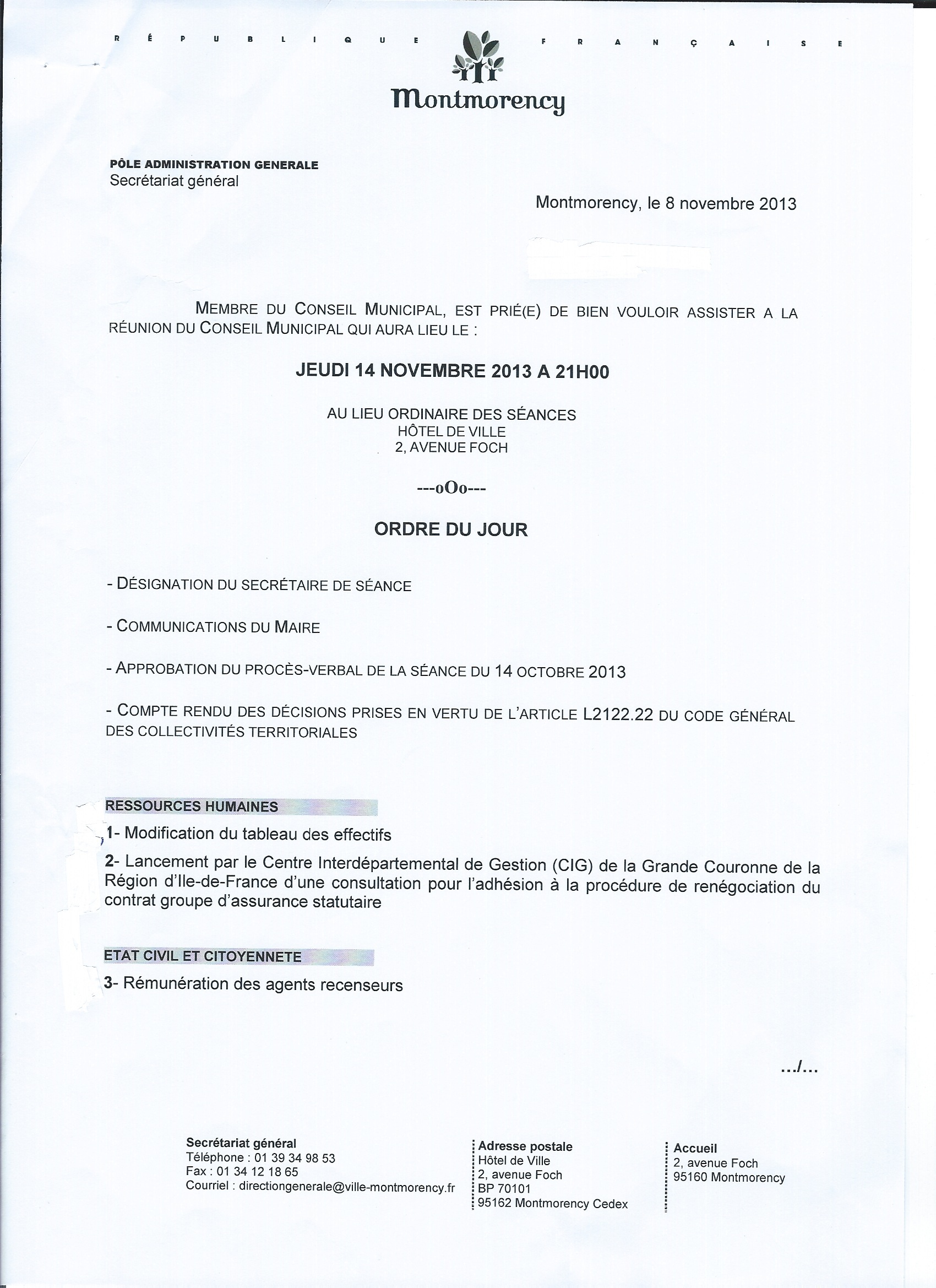 Conseil Municipal du jeudi 14 Novembre 2014