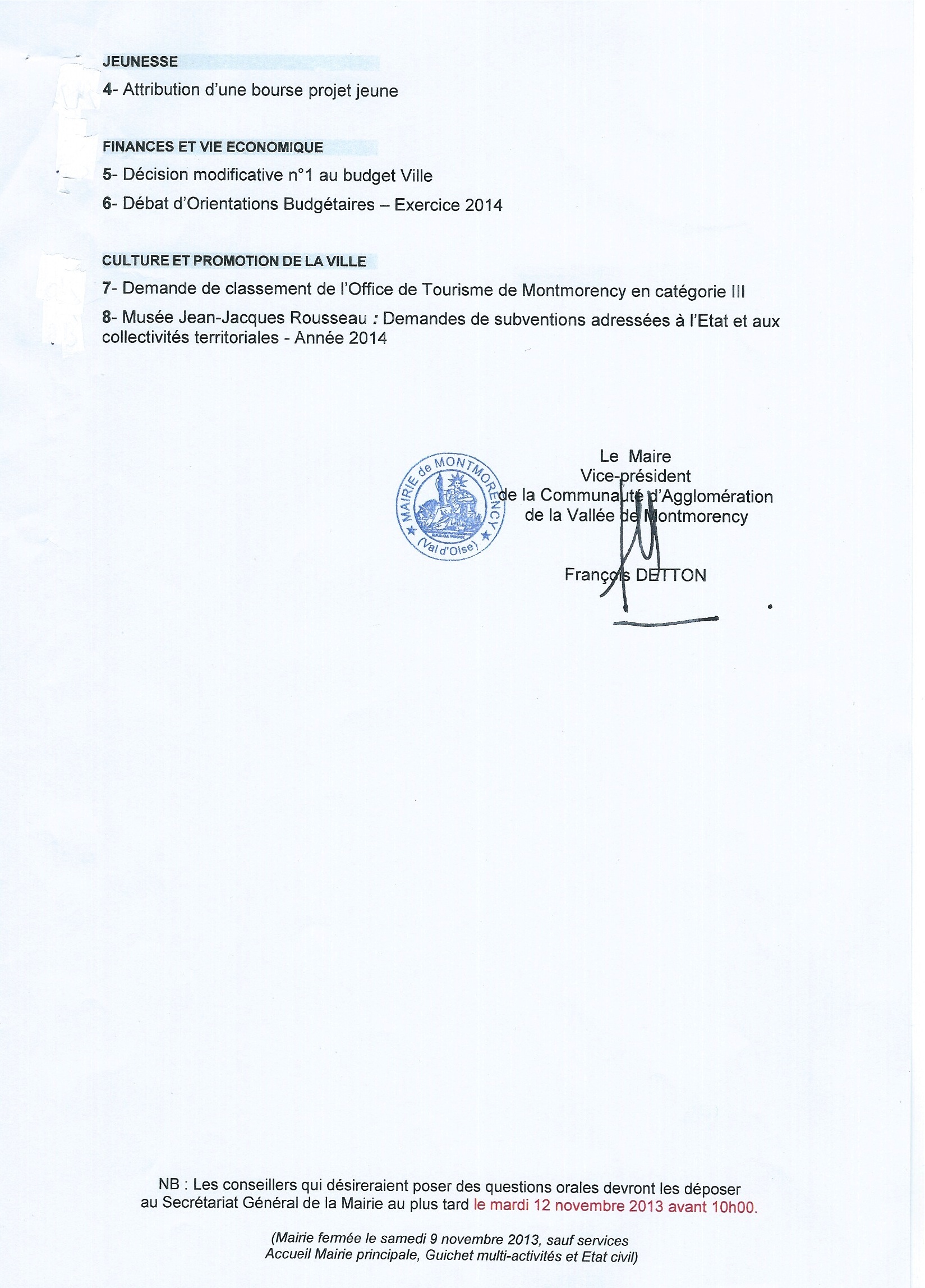 Conseil Municipal du jeudi 14 Novembre 2014
